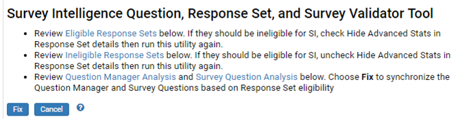 Check SI Readiness- Survey Intelligence Question, Response Set, and Survey Validation Tool