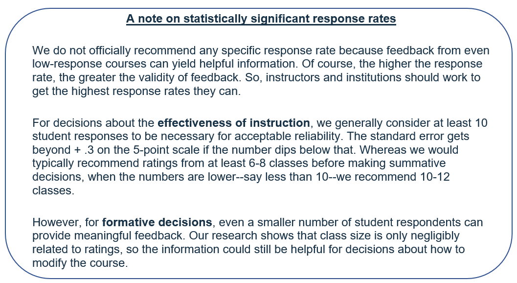 Faculty members can have the greatest impact on evaluation response rates due to their frequent interactions with students. The following strategies offer ways to capitalize on this potential for impact.
